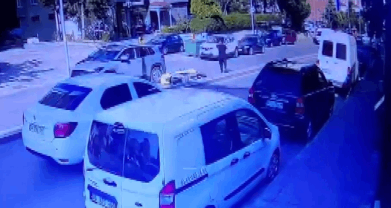 Ani hareket sebebiyle şoförünün hakimiyetini kaybettiği motosiklet devrildi. Kazanın tesiriyle karşı şeride savrulan motosiklet şoförü, hafif ticari aracın altında kalmaktan son anda kurtuldu. Etraftakilerin ihbarı üzerine adrese polis ve sıhhat takımları geldi. Yaralanan motosiklet şoförü ambulansla hastaneye kaldırıldı. Kaza anı, caddedeki bir iş yerinin güvenlik kamerası tarafından kaydedildi.