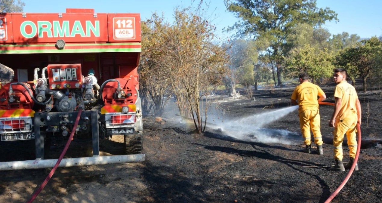 Aydın’ın Nazilli ilçesinde tarım yerinde başlayan yangın, zeytinliğe sıçradı. Yangın söndürülürken, 4 dönüm alan ziyan gördü.
