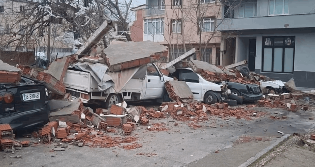 Kentte dün sabah saatlerinden itibaren tesirli olan fırtına, hayatı olumsuz etkiledi. Saatteki suratı kent merkezinde 75, ilçelerde ise 105,5 kilometreye ulaşan fırtına nedeniyle binaların çatıları uçtu, park halindeki araçlar savruldu. Yıldırım İlçesi Arabayatağı Mahallesi 1’inci Asil Sokak’ta bulunan boş bir alandaki bahçe duvarı ise fırtınanın şiddetiyle park halindeki araçların üzerine devrildi, 7 araba, 2 kamyonet ve bir otobüste hasar meydana geldi.