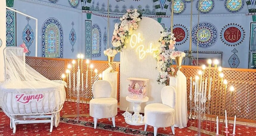 Ilay bir toplumsal medya paylaşımıyla ortaya çıktı. Kartepe’deki bir mescitte gerçekleştirilen “baby shower” partisinin imajlarını paylaşan tertibe firması, cami içerisinde balonlar, ışıklar, rengarenk süslemeler ve armağan köşeleriyle hazırladığı konsepti duyurdu.