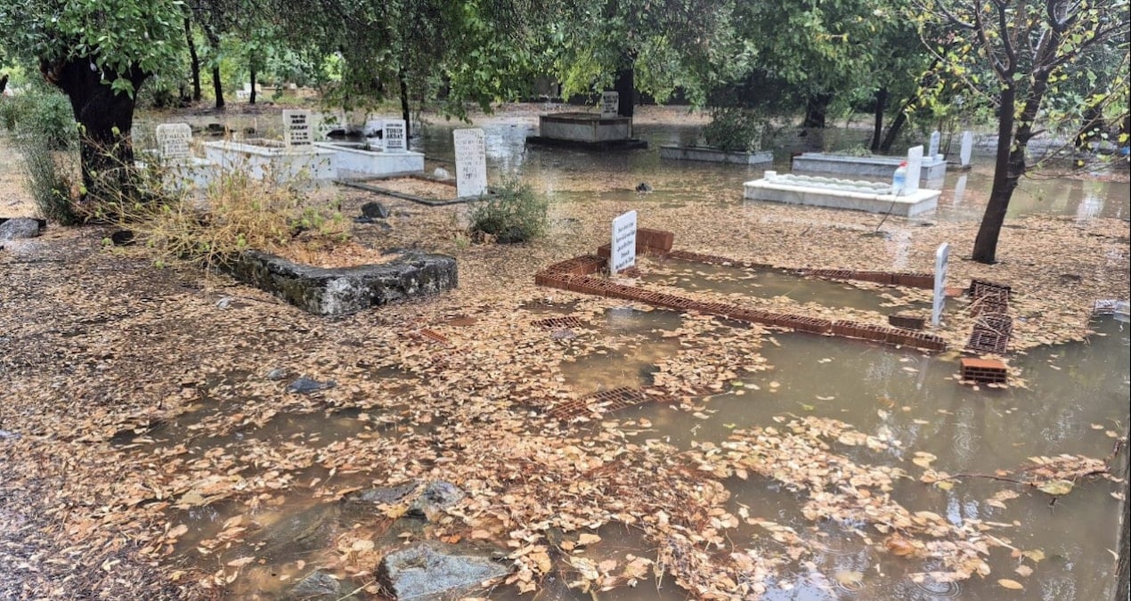 Merkez mezarlığında birçok kabir sular altında kaldı. İlçede yağış nedeniyle vakit zaman hasarlı kazalar da yaşandı.