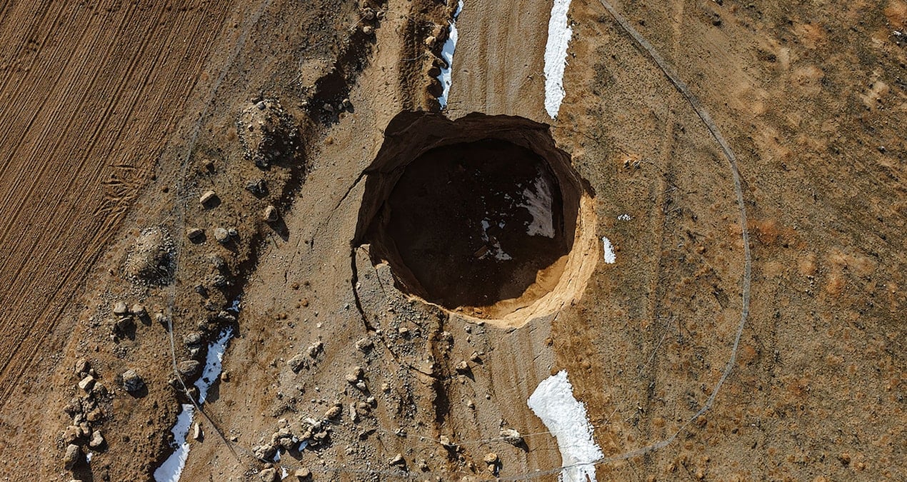 Konya Ovası’nda bilhassa Karapınar bölgesinde görülen ve sayısı 700’ü bulan obruklara bir yenisi daha eklendi. Kent merkezine yaklaşık 30 kilometre uzaklıkta oluşan obruğun çapı 30, derinliği 15 metre. Konya Teknik Üniversitesi’nden Doç. Dr. Arif Delikan, “Obruklar büsbütün birinci faktör olarak iklim değişimiyle alakalı bir durum. Burada yağışların azalması, bölgedeki yüzey sularının tamamı yok olması ve yer altı sularında aşağı gerçek süratli bir biçimde çekilmesinden kaynaklanan bir durum var” dedi.