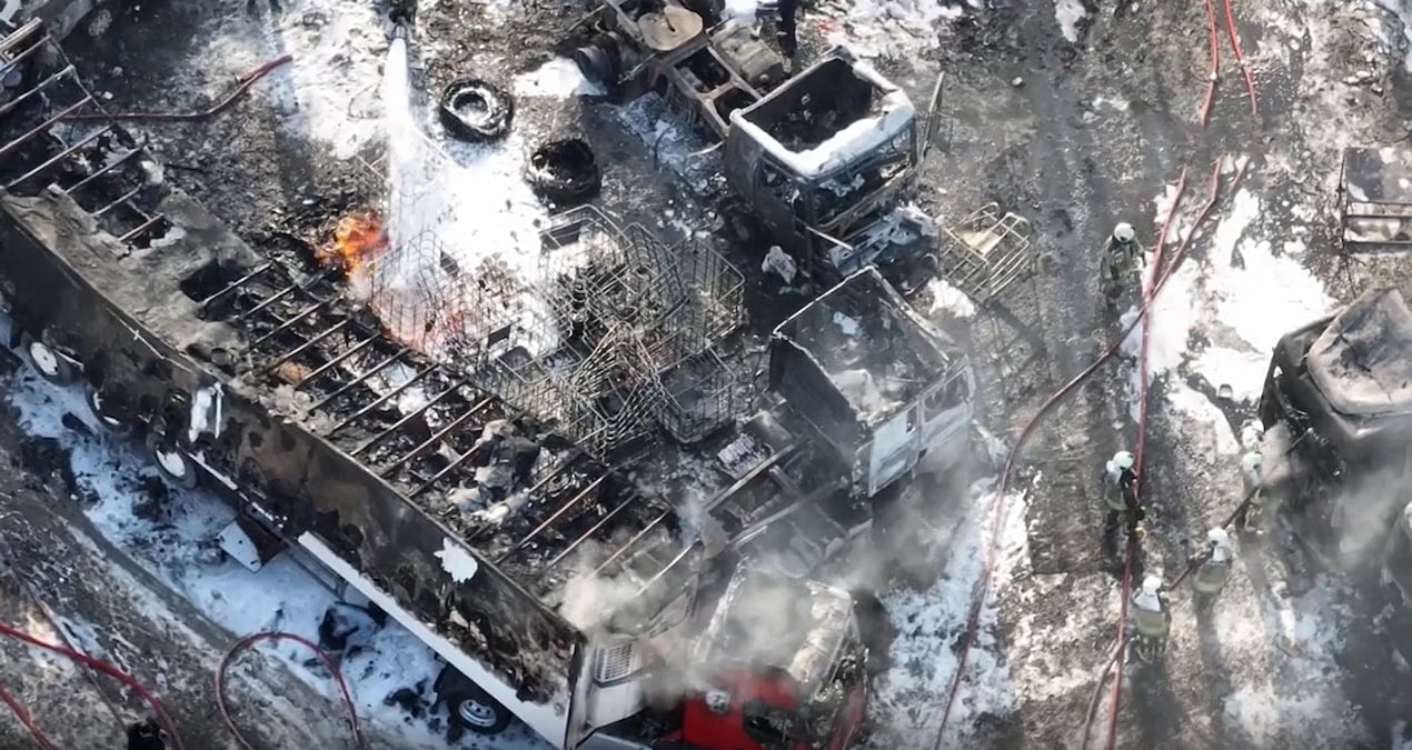 İlk belirlemelere nazaran, otoparktaki 6 tır yangında ziyan gördü. Yanan tırlarda alkol bulunduğu sav edildi. Yangının çıkış sebebine ait inceleme sürüyor.